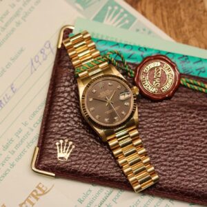 Tillbehör: original certifikat från (Italien 1989) samt låda, booklets, tag.